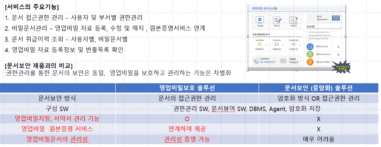 | 영업비밀 솔루션 설치 지원 | 기관 ID 및 관리자 DB 계정 제공 | 영업비밀보호 솔루션 교육 |
